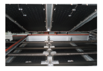 中央支撐系統(tǒng),防止PCB板拼板變形。 導(dǎo)軌釆用重載加硬處理,高負(fù)載,
