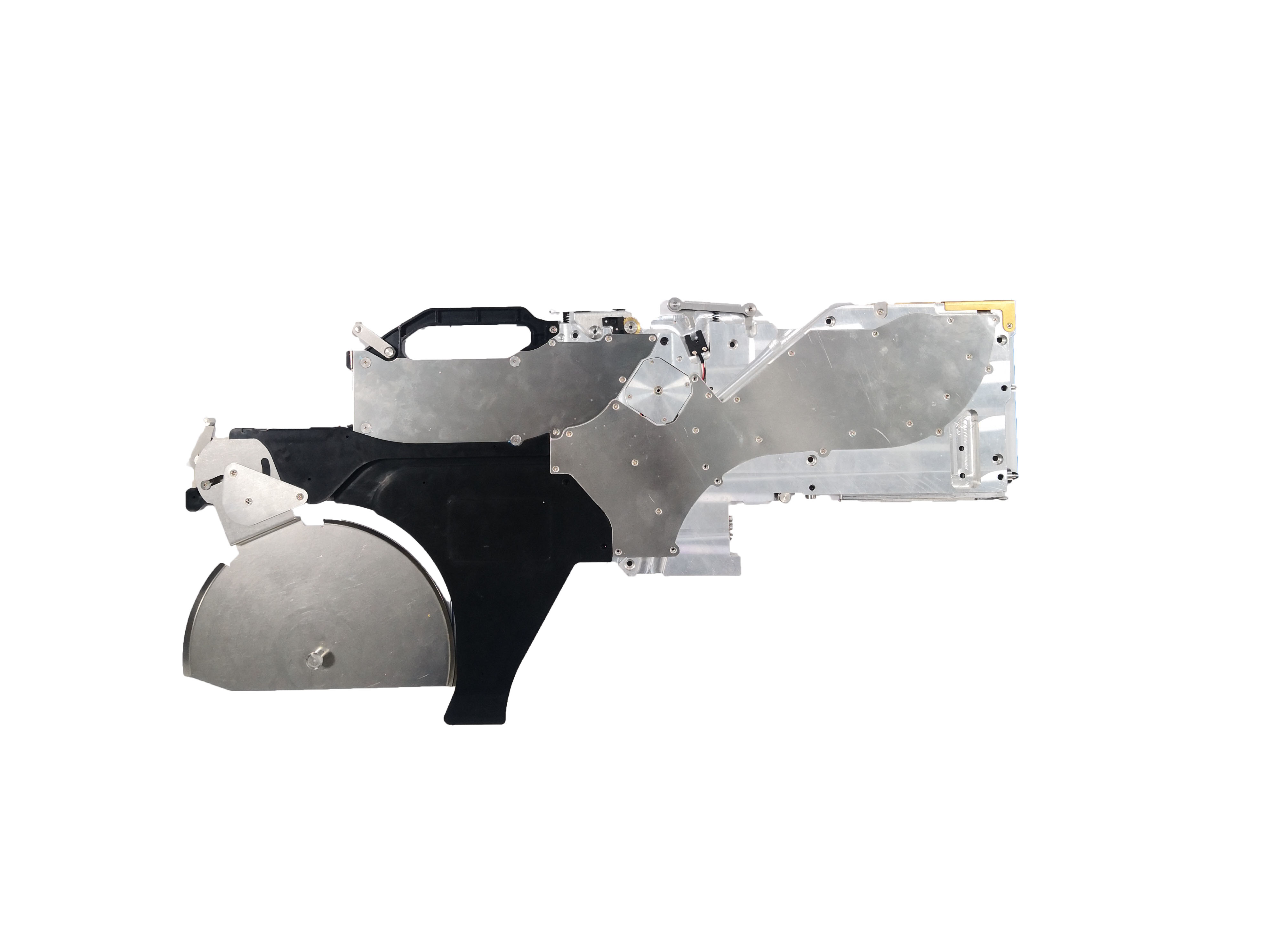 有11個(gè)通訊端口,能與機(jī)器自動(dòng)通訊;動(dòng)收料馬達(dá),能自動(dòng)把料膜收入料倉;飛達(dá)防翹起設(shè)計(jì),沿用最新松下,富士技術(shù)