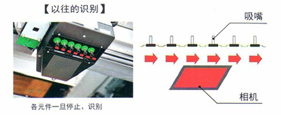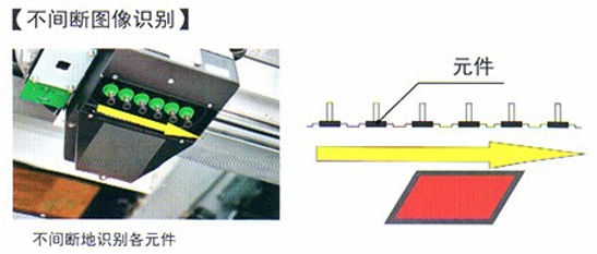通過相機(jī)實現(xiàn)了高速無停頓圖像識別,對吸取的各個元件連續(xù)拍攝,實現(xiàn)了高速圖像識別。