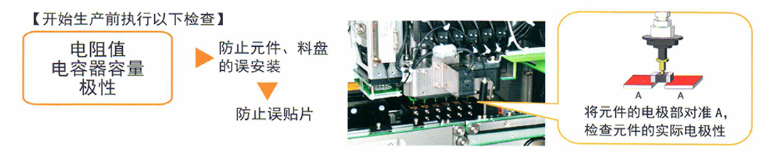 在開始生產(chǎn)前測定貼片元件的「電阻值JJ電容器容量JJ極性」可以事先防止元件誤貼片。新型的CVS裝置,可以同時